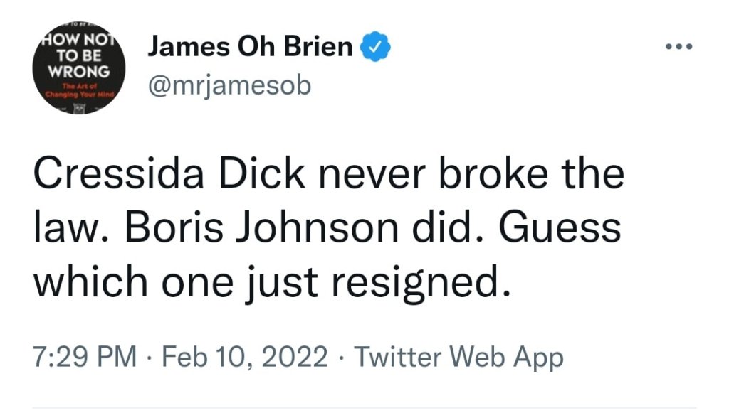 To be honest I’m a bit baffled by Cressida Dick’s resignation from the met. Why did she need to go? There’s not much I feel I can write about it, but I think this sums the farce up nicely.