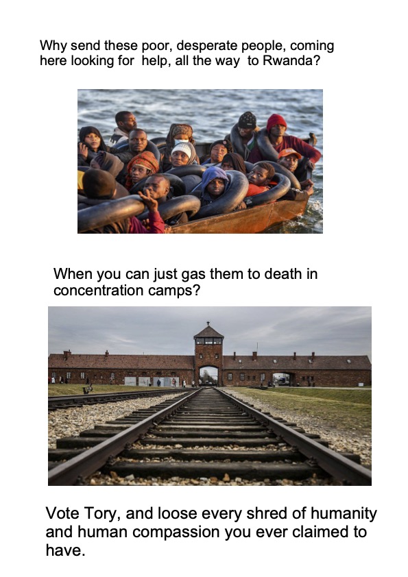 I hope I’m not going too far with this, but I made it after listening to Sunak speak this morning. I find the Tory attitude towards immigration and ‘stopping the boats’ utterly sickening.