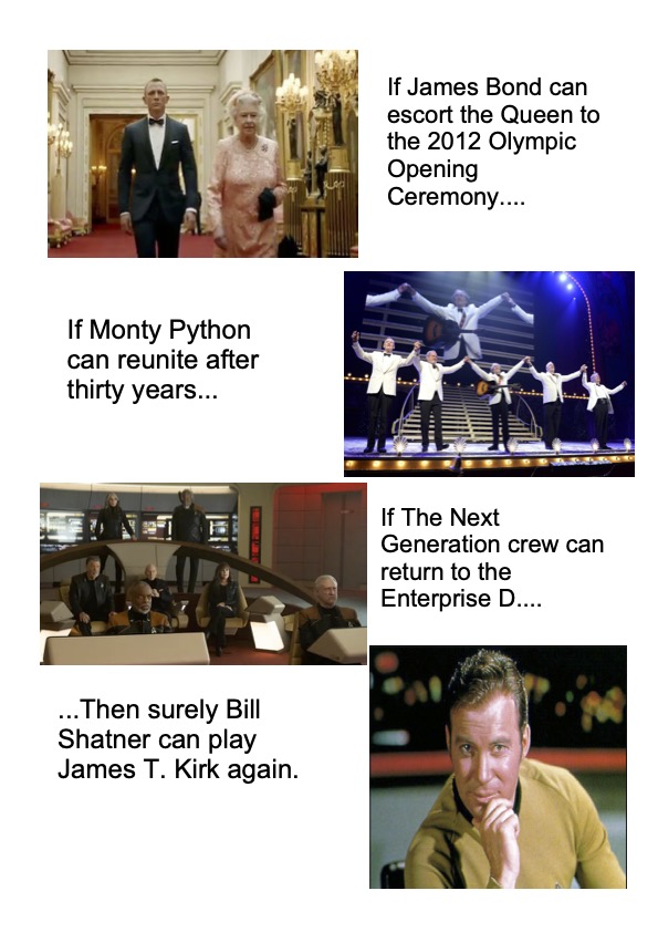 The only question is, how. I know Shatner’s Kirk was shown to have died in Star Trek Generations (1994), but all it would take is a little clever writing to put Starfleet’s most iconic captain back in his chair.